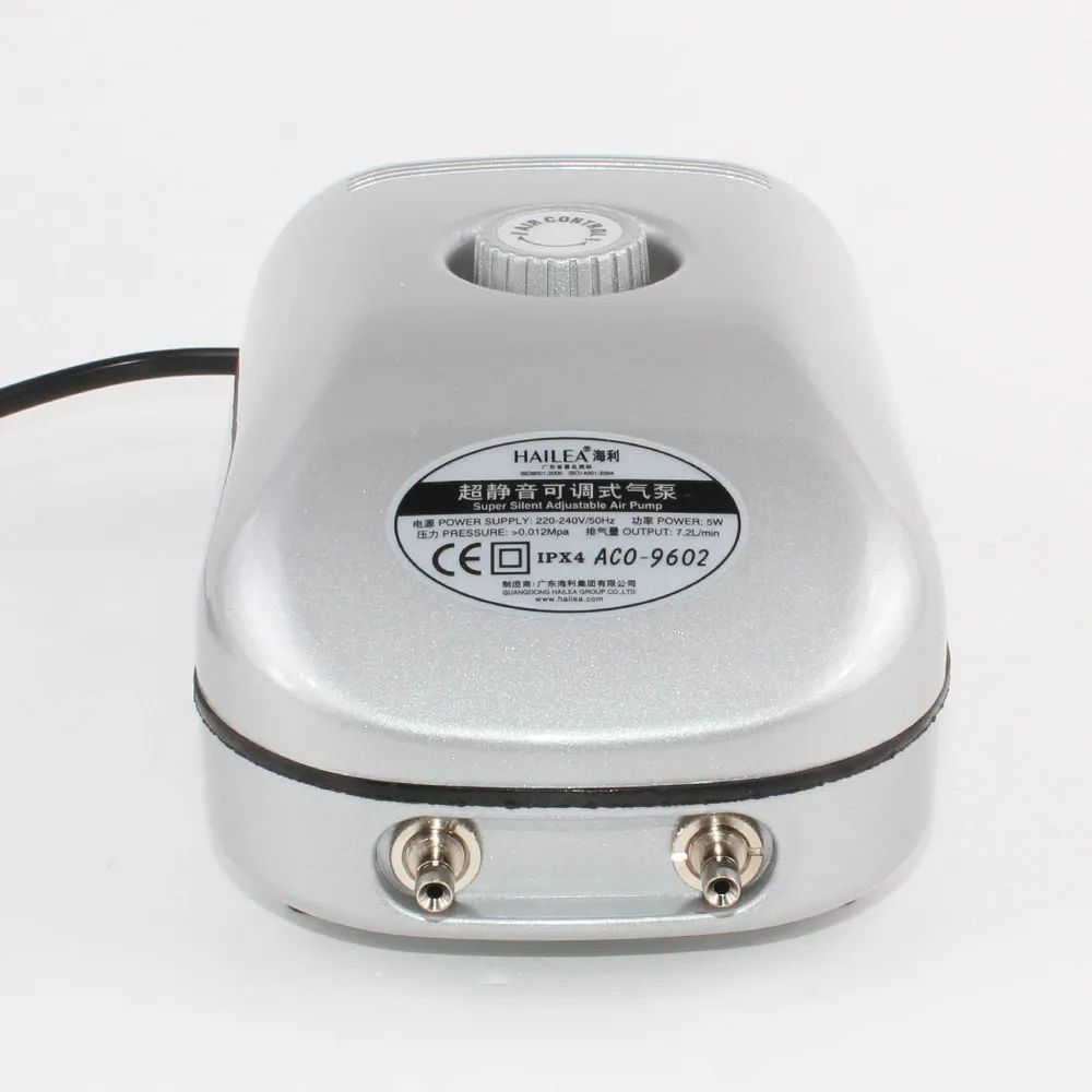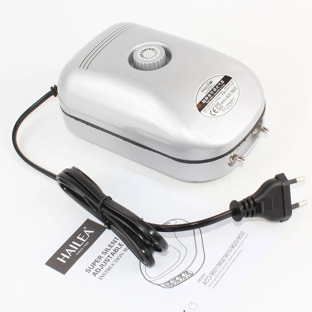 Компрессор мембранный Hailea ACO-9602 для аквариума, пузырьковых панелей и бытовых задач поддерживает плавную регулировку воздушного потока. Компрессор для аквариума мембранный Hailea оснащен многоуровневым глушителем, который снижает шум во время работы до минимальных значений. Бесшумный компрессор для аквариума изготовлен из АБС пластика и алюминия, а патрубки произведены из нержавеющей стали. Для стабильности объема и давления есть резиновые насадки. Чтобы мембранный компрессор для аквариума не скользил, есть резиновые ножки, снижающие уровень вибраций. Hailea компрессор для аквариума за час производит порядка 430 литров воды.