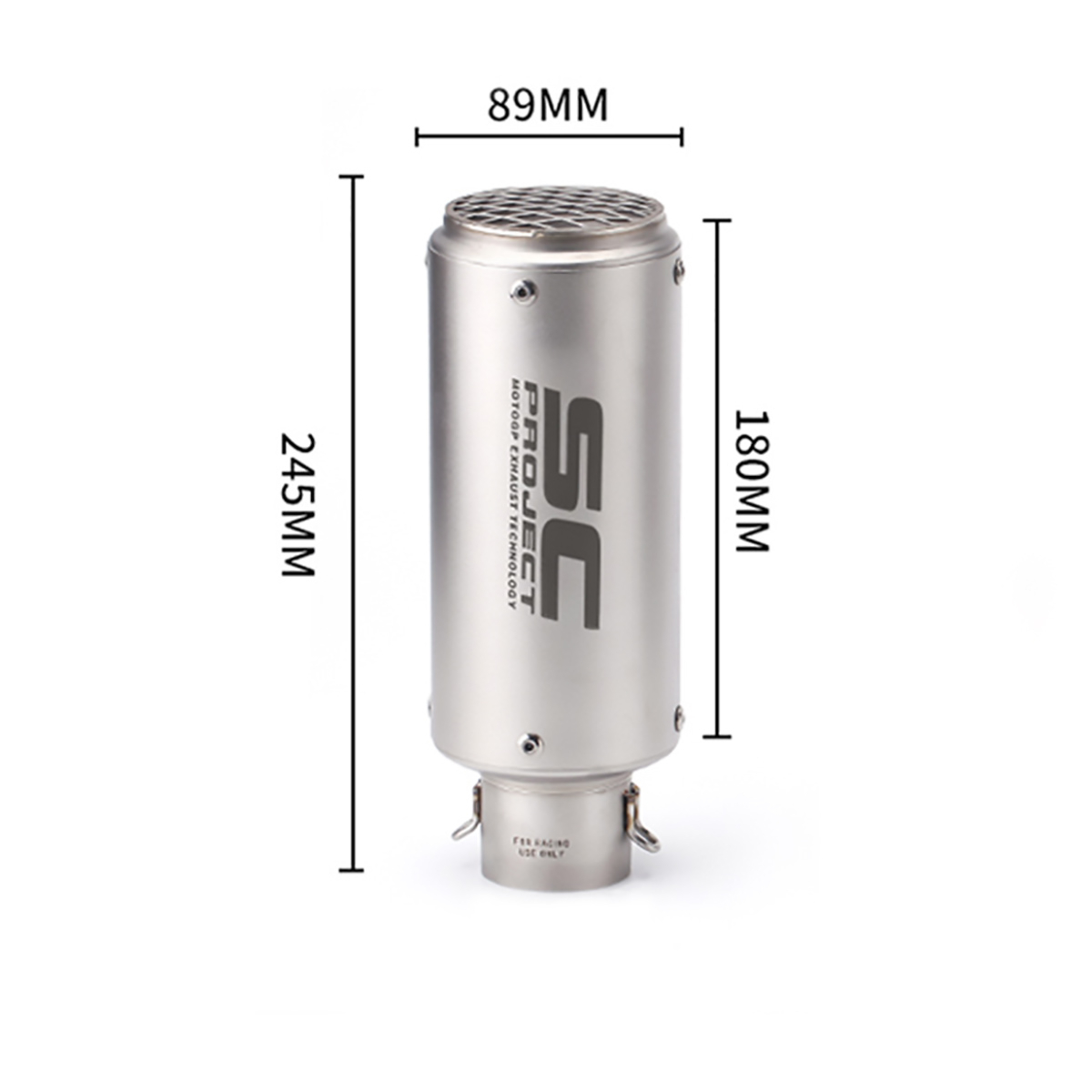 Габариты этого глушителя составляют 245х89х89 мм, обеспечивая оптимальные размеры для вашего мотоцикла или квадроцикла.