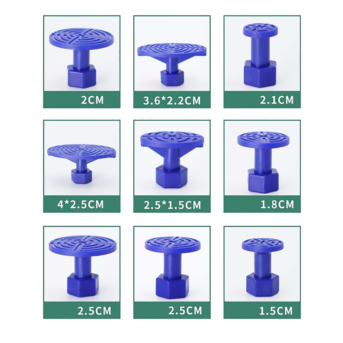 В наборе Т-образный инструмент и 18 синих накладок разной формы и размера