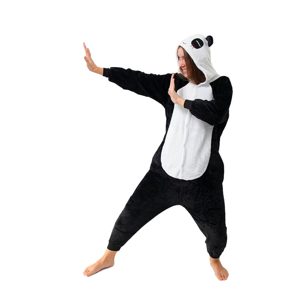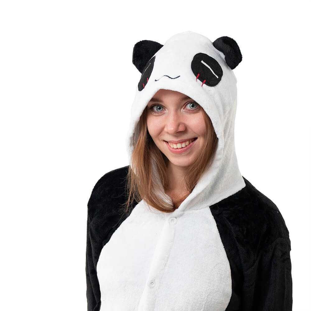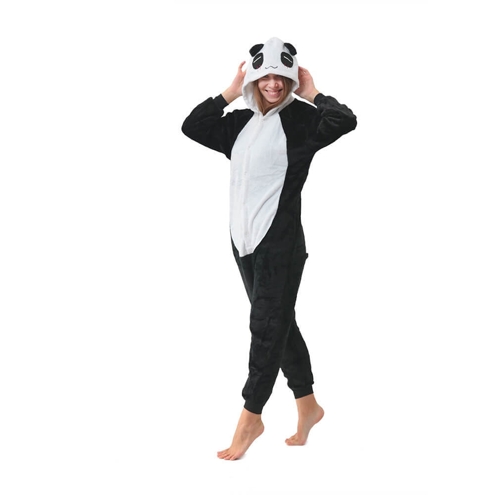 Кигуруми Панда с уникальными нашивными элементами смотрится мило и забавно. Стилизованная костюм-пижама понравится взрослым и детям. Свободный крой позволяют почувствовать себя сказочным тибетским горным медведем людям с любой комплекцией. Наличие карманов позволяет держать необходимые мелочи под рукой, а манжеты необходимы не только для оформления, но и фиксации длины рукава. Мягкий и теплый флис, из которого пошит цельный комбинезон, приятен телу. Практичный материал с антибактериальными свойствами не требует специального ухода. Засыпать в такой пижаме приятно. Организовав вечеринку, в такой пижаме можно стать однозначным лидером вечеринки.