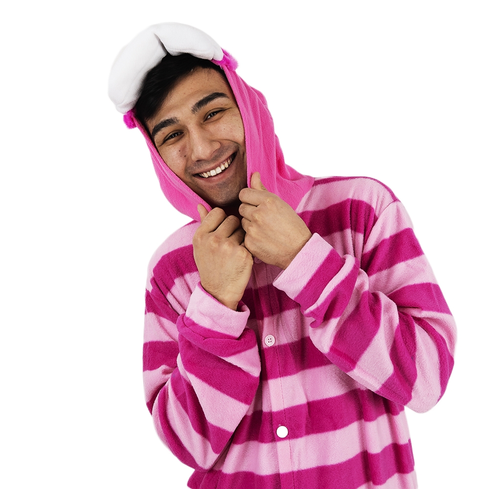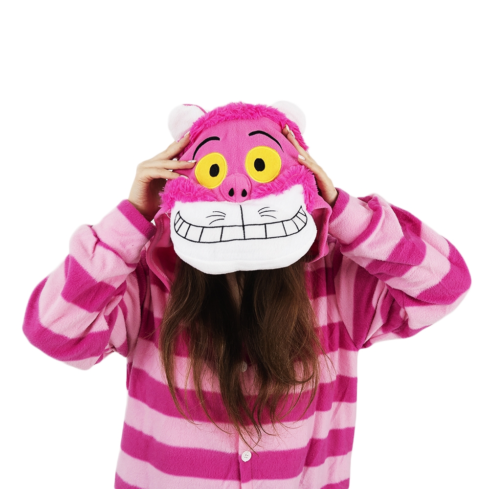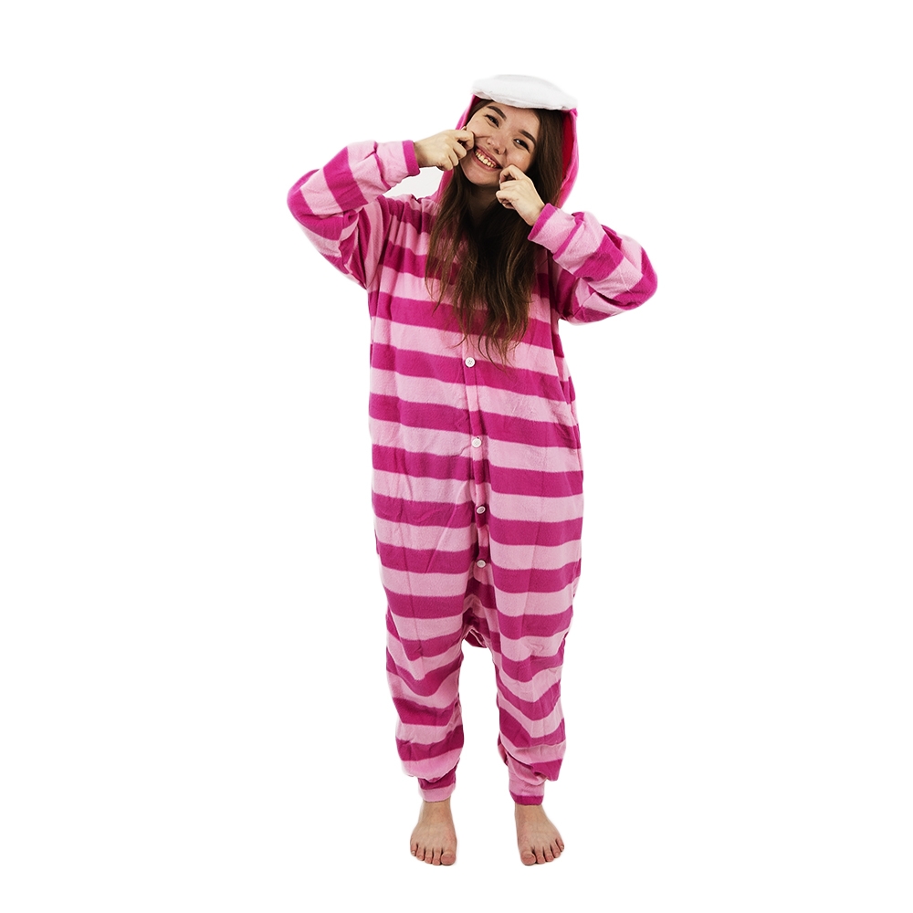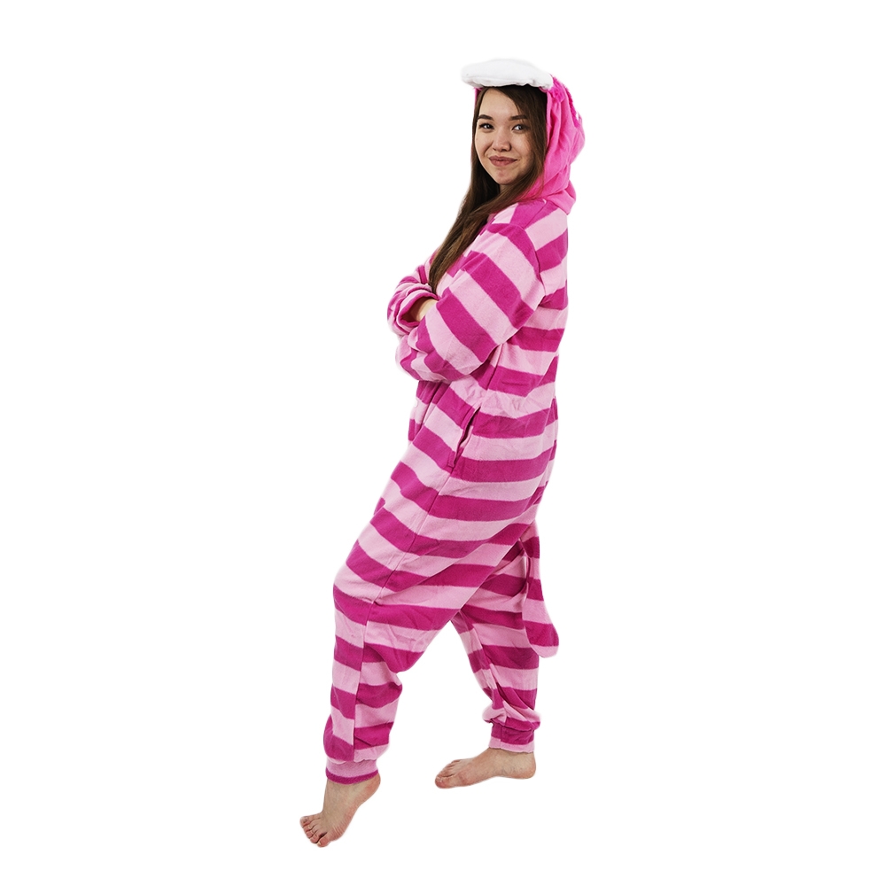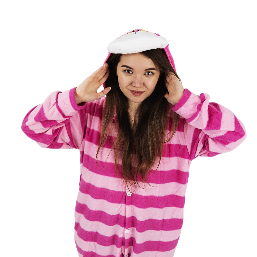 Забавный кигуруми перенесет вас в воображении в сказочную страну чудес. Вы сможете перевоплотиться в Чеширского Кота, который всегда улыбается. Сложно сдержать улыбку, рассматривая красочный дизайн этой модели: яркие полоски, мордочку на капюшоне. Кигуруми подарит игривое настроение и поможет стать звездой пижамной вечеринки.