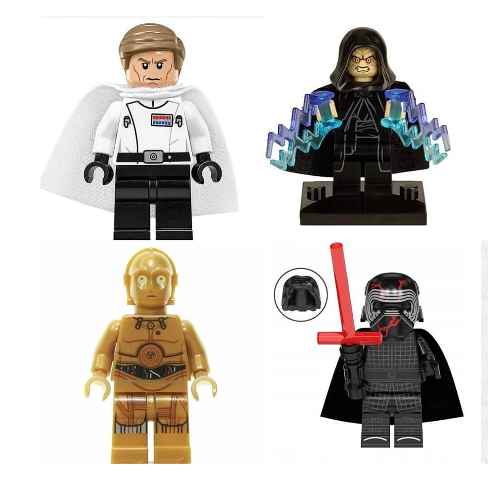 - В состав набора входитОби-Ван Кеноби, Штурмовик, Чуи, С-3РО, Дарт Вейдер, Рей, Джа Джа Бинкс, Люк Скайуокер, Боба Фетт, Мандалорец, Генерал Гривус, Император Палпатин, Дарт Мол, Орсон Кренник, Кайло Рен с плащом, Кайло Рен