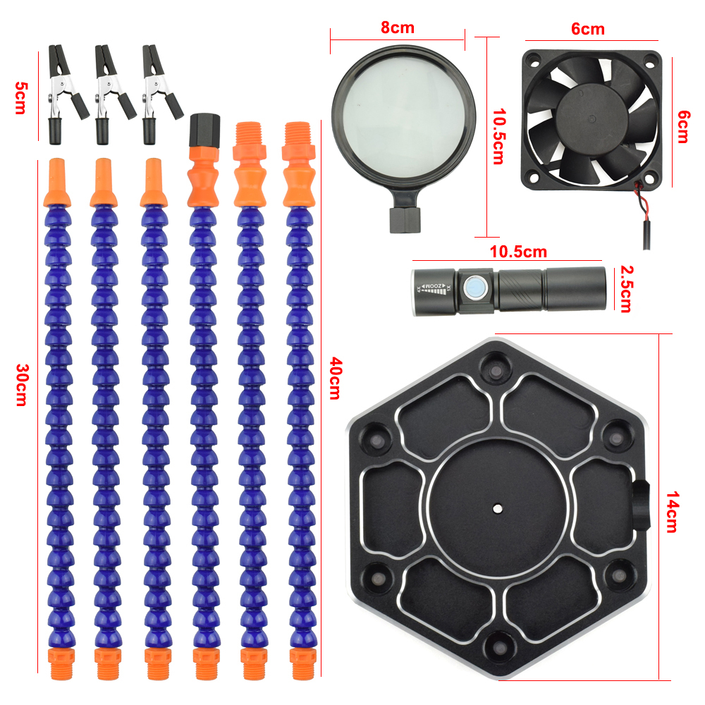 Гибкий держатель для пайки Solder Master (лупа, фонарик, вентилятор, 3 зажима)