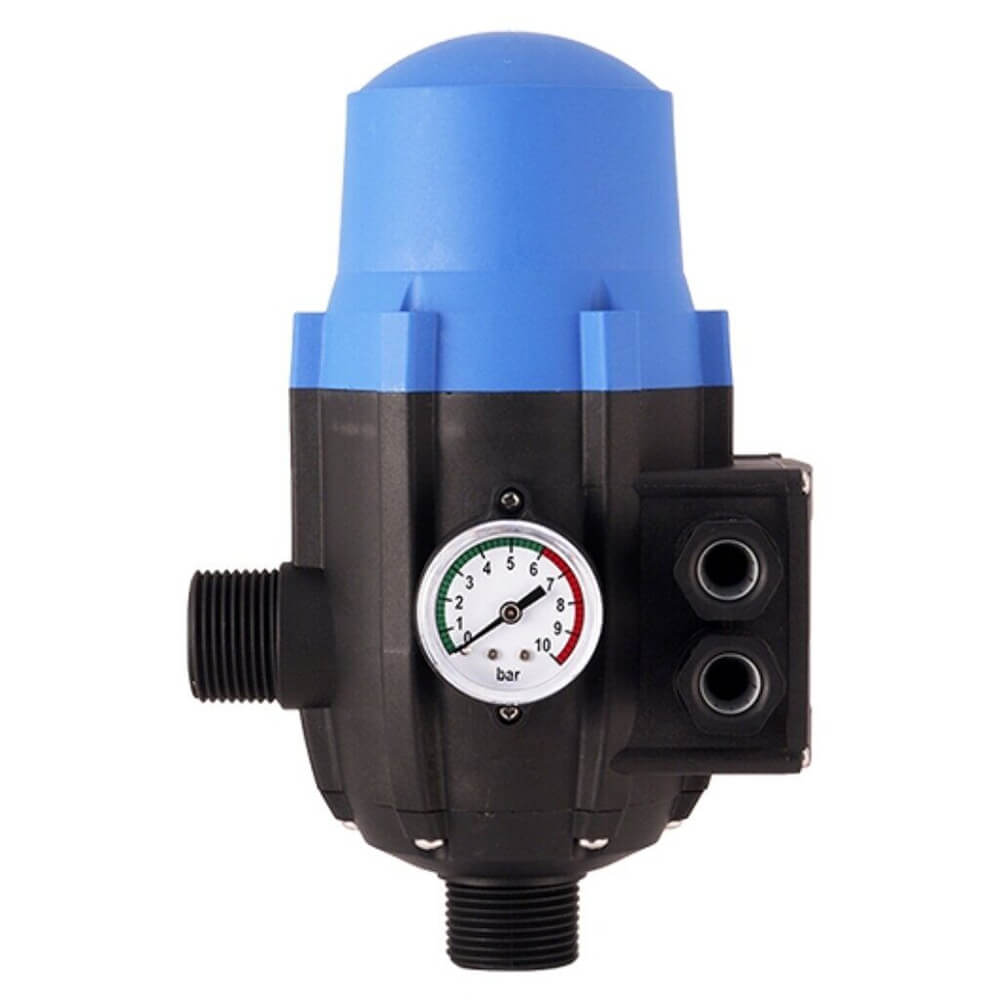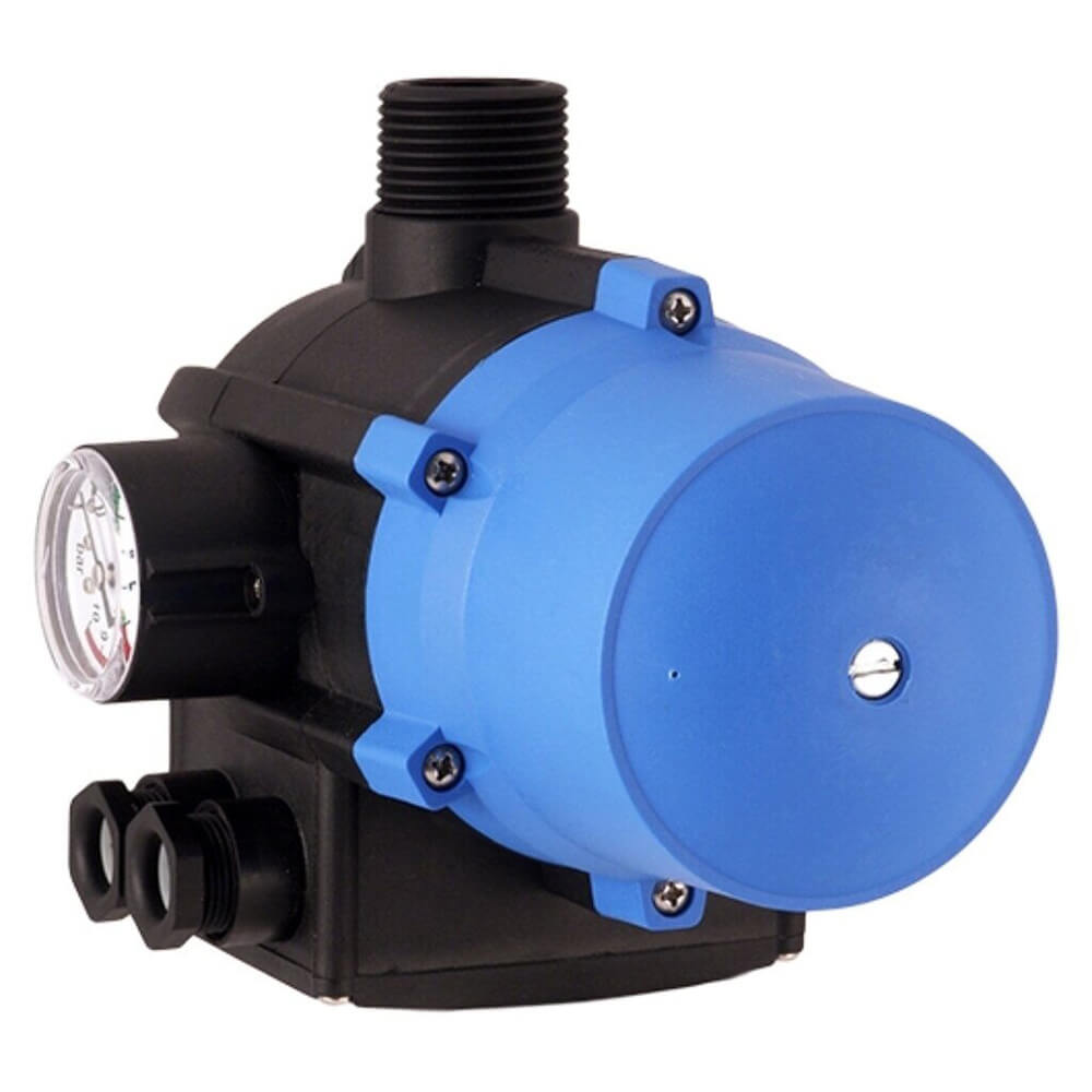 Контроллер давления насоса EPIC-2 – это устройство, которое в автоматическом режиме запускает или останавливает насос. Встроенный манометр измеряет давление в трубопроводе и по его величине определяет положение насоса. Значения выводятся на экран со стрелкой. Используется в трубопроводах, где поток жидкости не превышает 80 л/мин. Контроллер крепится при помощи винтовой присоединительной резьбы 1 дюйм и питается от сети 220В. Блок-устройство оснащено защитным механизмом, который предотвращает работу в случае отсутствия воды. Корпус выполнен из пластика и имеет защиту от воды по стандарту IP65.