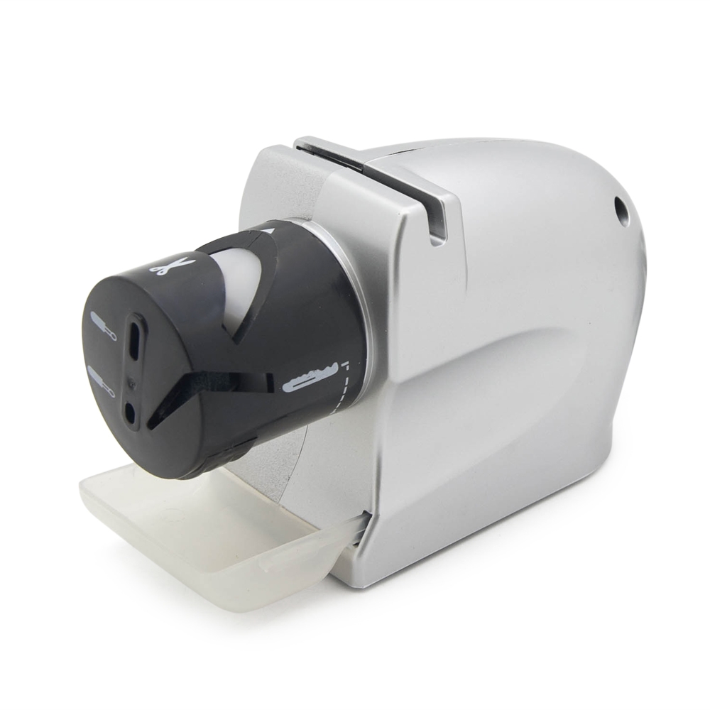 Электрическая ножеточка Острые Грани – небольшой кухонный прибор, предназначенный для использования в бытовых или производственных условиях. Используется для затачивания кухонных ножей различных размеров, а также бытовых режущих инструментов. Производится в корпусе из прочных полимерных материалов, имеющих зеленый, красный или серебристый цвет. Для дополнительной обработки лезвий имеется шлифовальный круг средней зернистости. Для затачивания различных ножей предусмотрены специальные ячейки. Обеспечивает высокий уровень безопасности при использовании и исключает возможность получения травм при заточке ножей. Для сбора металлической стружки имеется специальный лоток.