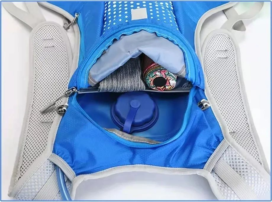 Рюкзак-гидратор FreeKnight 7L с питьевой системой 2л оснащен специальным мундштуком для питья воды без использования рук во время ходьбы. Рюкзак гидратор для бега, туризма, велоспорта, альпинизма имеет прочные анатомические вентилируемые лямки, которые можно регулировать по длине. Рюкзак для бега с питьевой системой имеет основной большой отдел объемом 7 литров на молнии, в который можно сложить нужные вещи. Рюкзак беговой с гидратором произведен из нейлона в сине-серых цветах, он не боится влаги и легко очищается от загрязнений.