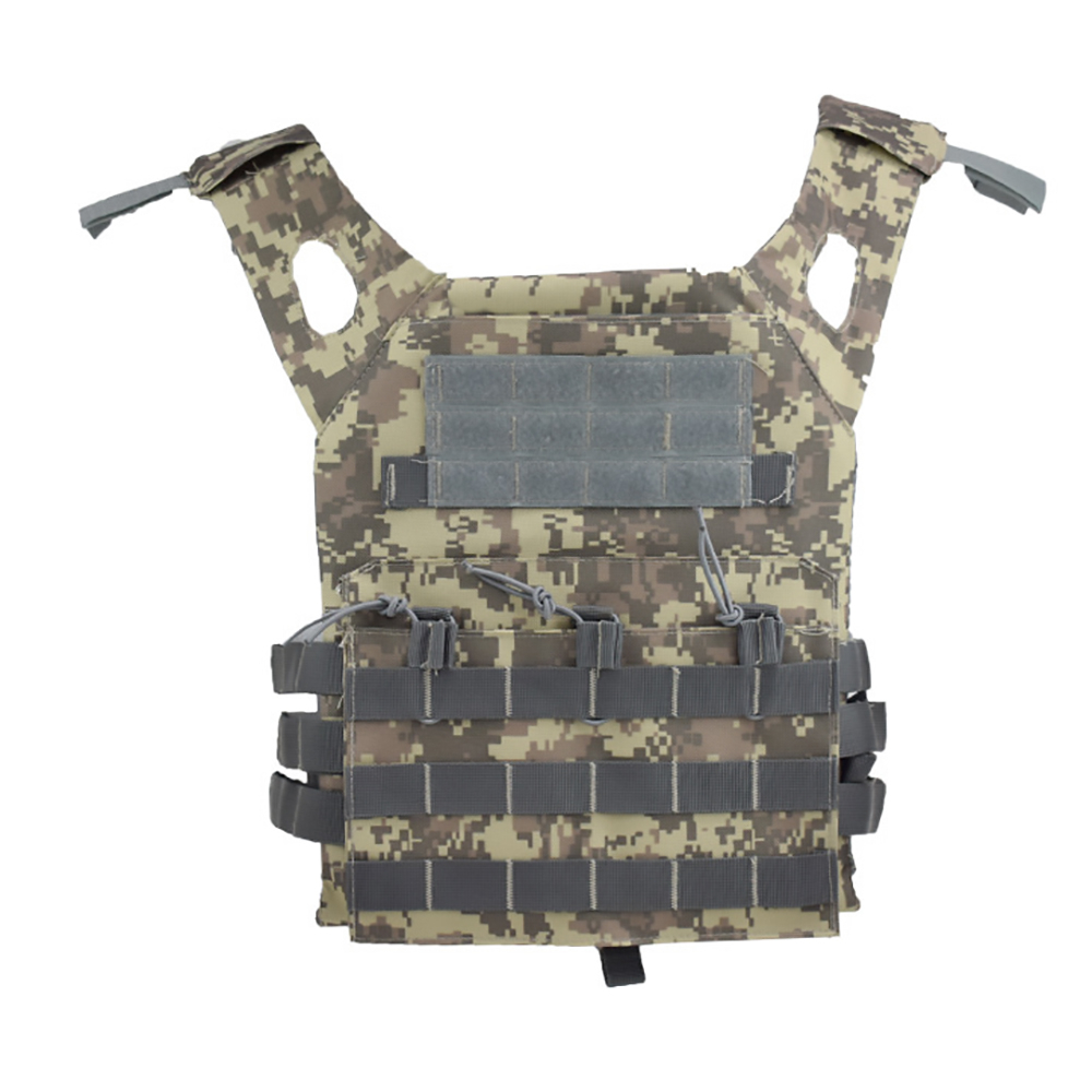 Тактический жилет JPC с двумя ПЭ пластинами ACU grey армейский используется для защиты человека от пуль, ножевых ранений. Военный жилет изготовлен из прочной ткани Оксфорд, не боится дождя, загрязнений и снега. Размеры бронежилета с пластинами регулируются по фигуре за счет эластичных резинок по всей поверхности. Боевой бронежилет имеет широкие лямки для плеч, благодаря которым нагрузка распределяется равномерно по всему корпусу. Тактический жилет с пластинами выполнен в песочном цвете хаки, за счет чего хорошо сливается с опавшей листвой. Жилет подходит для ношения летом, весной и осенью.